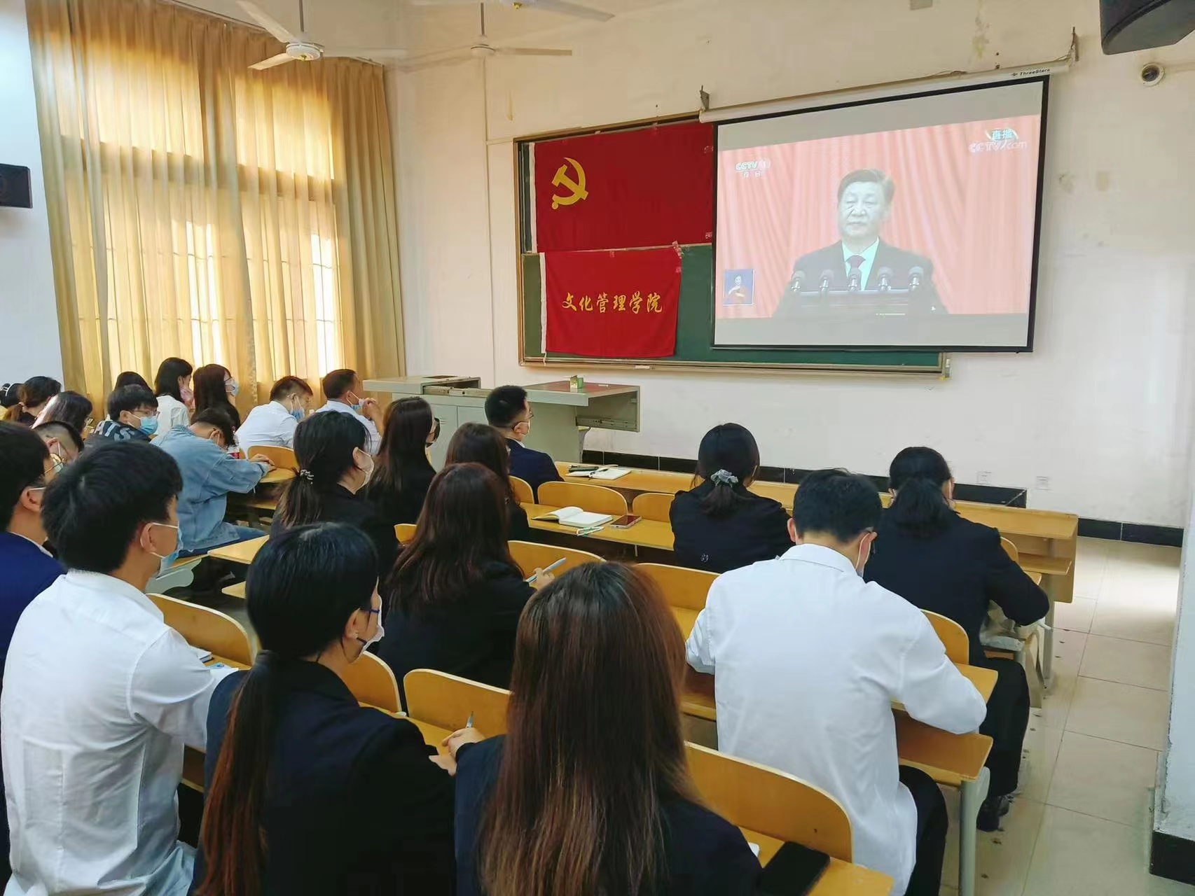 各学院党总支部、马克思主义学院党支部组织有序组织师生观看直播。在直播观看会场,不少老师和学生携带了听课笔记本,在认真学习党的二十大精神的同时,积极做好学习笔记。