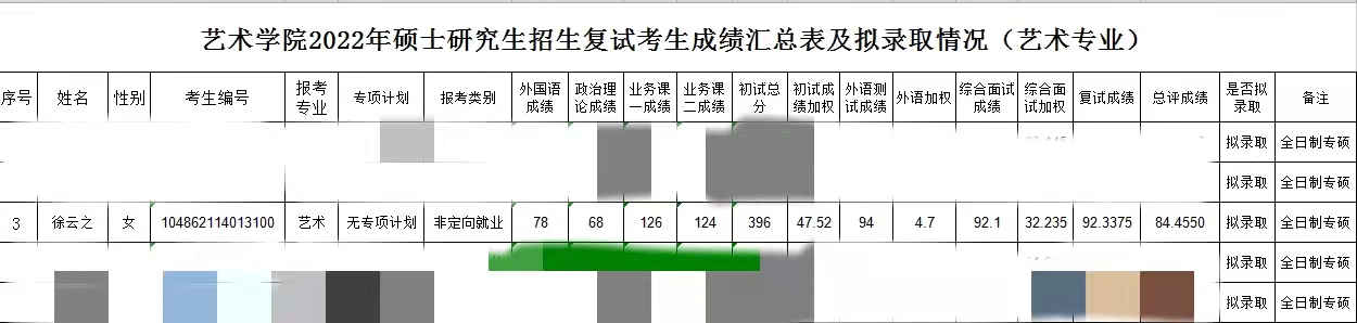 (武传新闻网讯 记者 骆博)2022年3月30日,武汉大学艺术学院硕士研究生拟录取名单公布,武汉传媒学院电影与电视学院2018级广播电视编导专业徐云之以初复试综合排名第三的成绩,成功被武汉大学艺术学院录取。