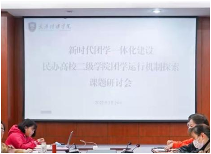 (武传新闻网讯 )3月23日,“新时代团学一体化建设—民办高校二级学院团学运行机制探索”课题研讨会在武汉传媒学院行政楼206会议室召开,课题组成员及二级学院团委书记参加会议,会议由校团委书记瞿宗巍主持。