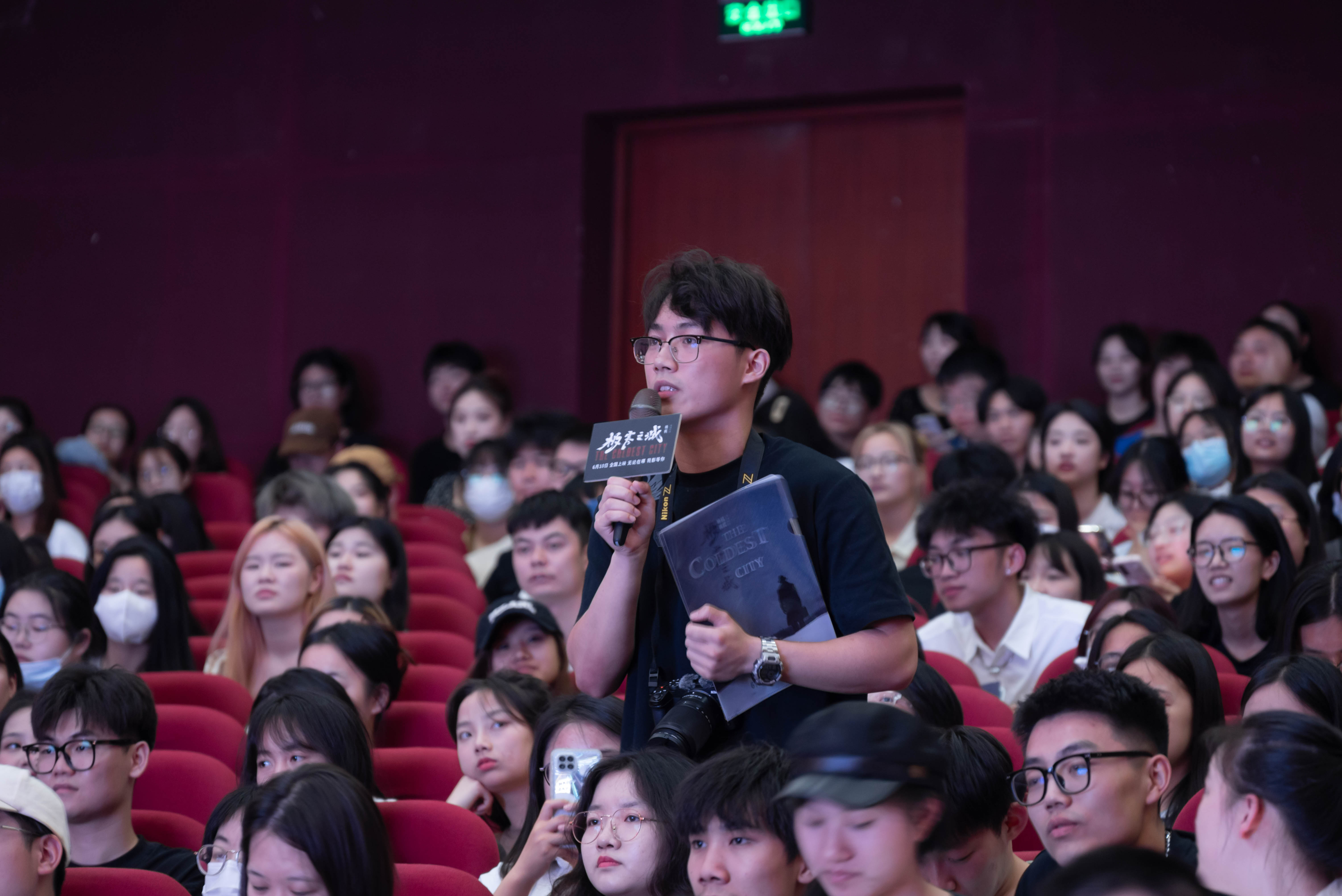 在影片结束后,春秋创意策划工作室通过影视片段的现场演绎环节引出《极寒之城》电影的主创团队导演杨枫,主演夏雨。主创们走上台前,与同学们交流观影体验,答疑解惑。现场活动结合武汉特色,导演杨枫与主演夏雨一同现场制作武汉特色美食热干面,并随机分发给在场的观众,同时,还邀请了现场观众为主创团队制作热干面,互动频繁,现场气氛被不断推向高潮。