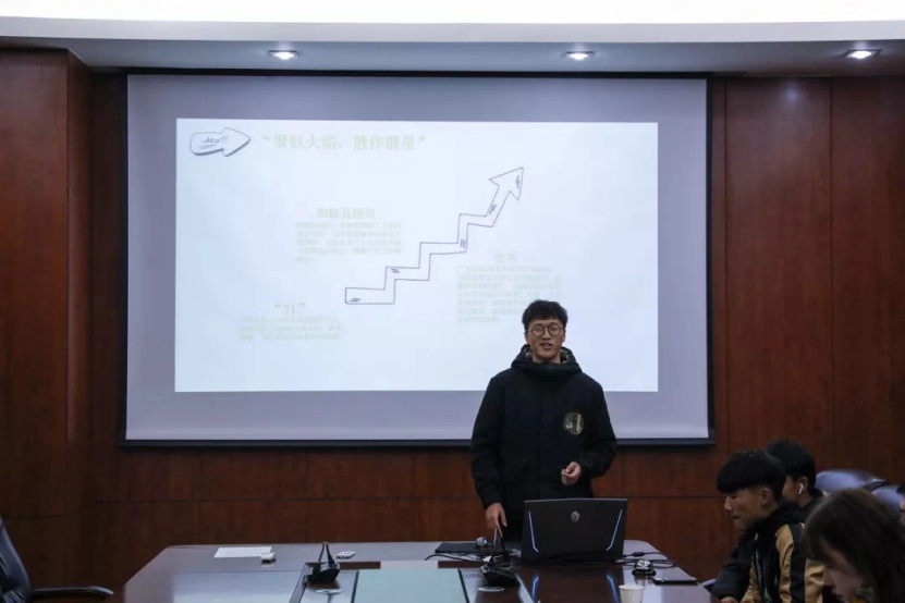 首先,来自传媒技术学院广播电视工程专业B1802的班长代表班级发言。“聚似火焰,散若群星。聚似一团火,散若满天星”是他们的班级口号,“‘积极’和‘团结’是最能概括我们的两个词汇,我们在未来会一冲到底”。在班级工作方面,“到目前为止我们班未出现学习预警的同学,我们也经常与其他班级交流经验,互帮互助相互学习”。班长表示,班级的特色工作因所学专业偏理工科,为照顾一些文科思维的同学,专门创建了兴趣小组,来帮助他们学习。