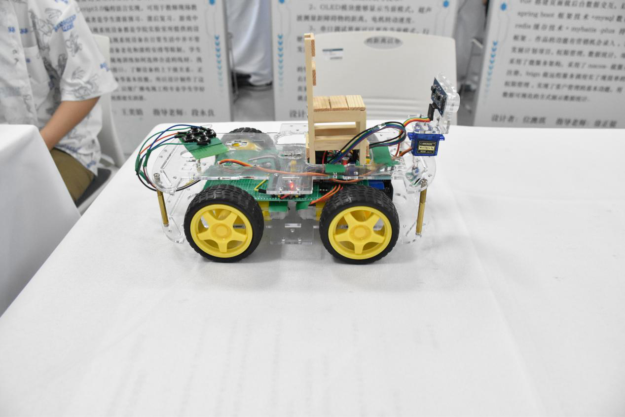 此外,在展览现场,一辆基于stm32的“电动轮椅”也收获了众多关注。设计者王永超介绍道:“本次设计用到了超声波测距、OLED显示、电机驱动、按键控制等技术,并分为手动和自动两种模式。”在被问到其设计理念时,王永超表示:“我认为在智能科技的时代,也应该关注老人的需求,想通过创新设计,让腿脚不便的老人可以体验到智能科技带来的幸福感。”