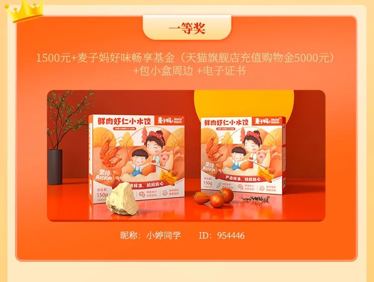 “温馨”“家”“朴实”便是张永婷创作的关键词。她以亲子户外互动的场景作为切入点,将主要食材采用儿童插画风的形式展现出来。在突出产品卖点的同时,注重用户诉求,用可爱治愈的设计来传达品牌理念:“让下厨更简单”,让每位消费者体会到家的温暖,对生活有美好憧憬和满满的热爱。