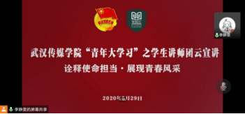 武汉传媒学院团委讯(通讯员/杨词)为学习贯彻习近平新时代中国特色社会主义思想,着力展现疫情期间中国共产党领导和中国特色社会主义制度优势。增强团员学习积极性,强化榜样领导作用。武汉传媒学院“青年大学习”之学生讲师团云宣讲第二期于5月29日晚18时在腾讯会议召开。
