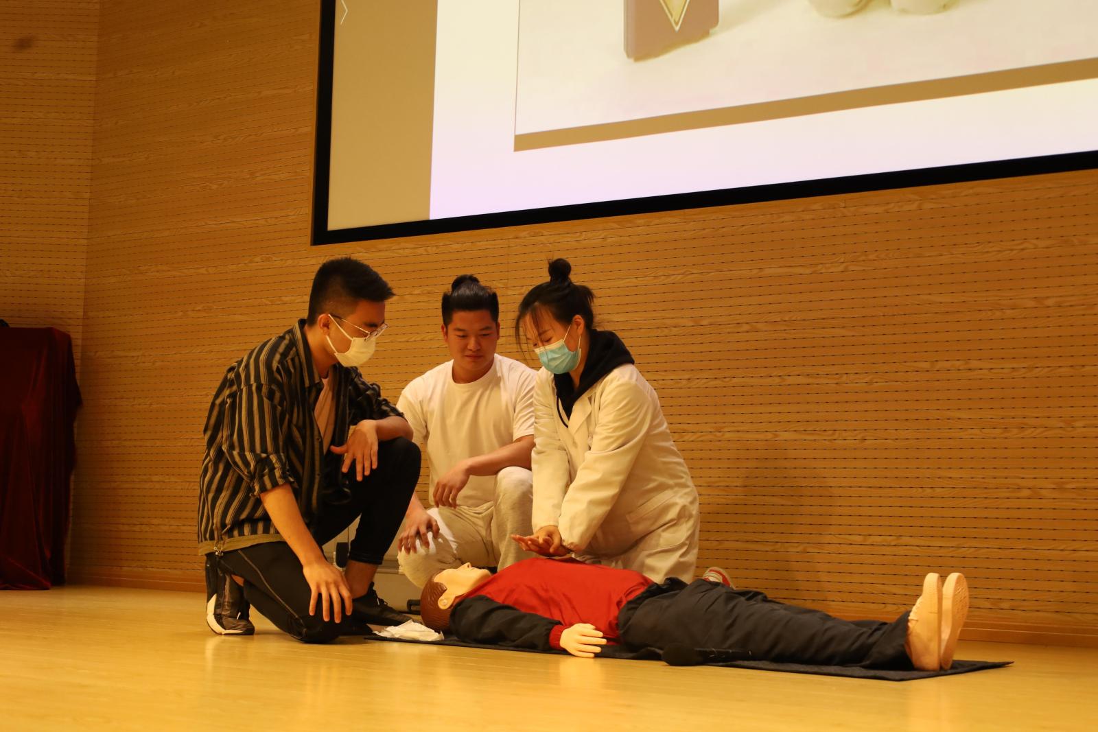 校医务室卢杏医生对全体辅导员进行了癫痫的急救处理和心肺复苏的培训,并邀请几位老师上台用假人进行演示。