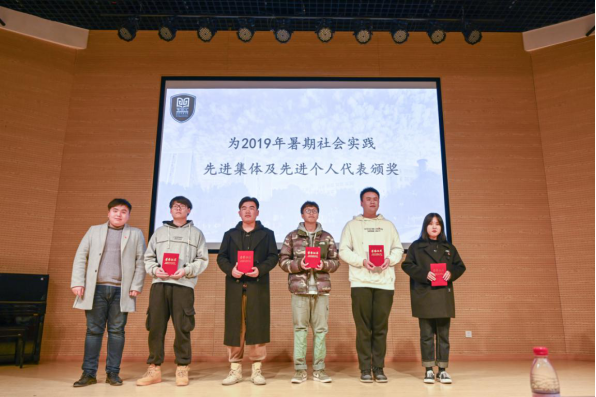 大会上,校团委副书记李伟成上台宣读《关于表彰2019年大学生暑期社会实践活动先进集体、先进个人的决定》。经相关单位申报,学校组织评审。共有2支社会实践团队被评为“大学生暑期社会实践一等奖”;3支团队获得二等奖;5支团队获得三等奖;3支团队获得优秀团队奖;434名同学被评为优秀个人。