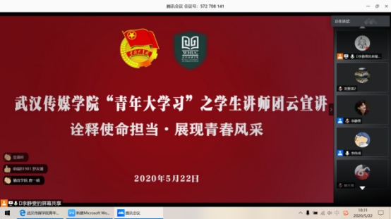 武汉传媒学院团委讯(通讯员/刘紫琪)为深入学习贯彻习近平新时代中国特色社会主义思想和党的十九大精神,持续深化“青年大学习”行动,进一步增强团员青年学习的积极性和实效性,武汉传媒学院“青年大学习”之学生讲师团云宣讲第一期于昨日18:00整正式上线。