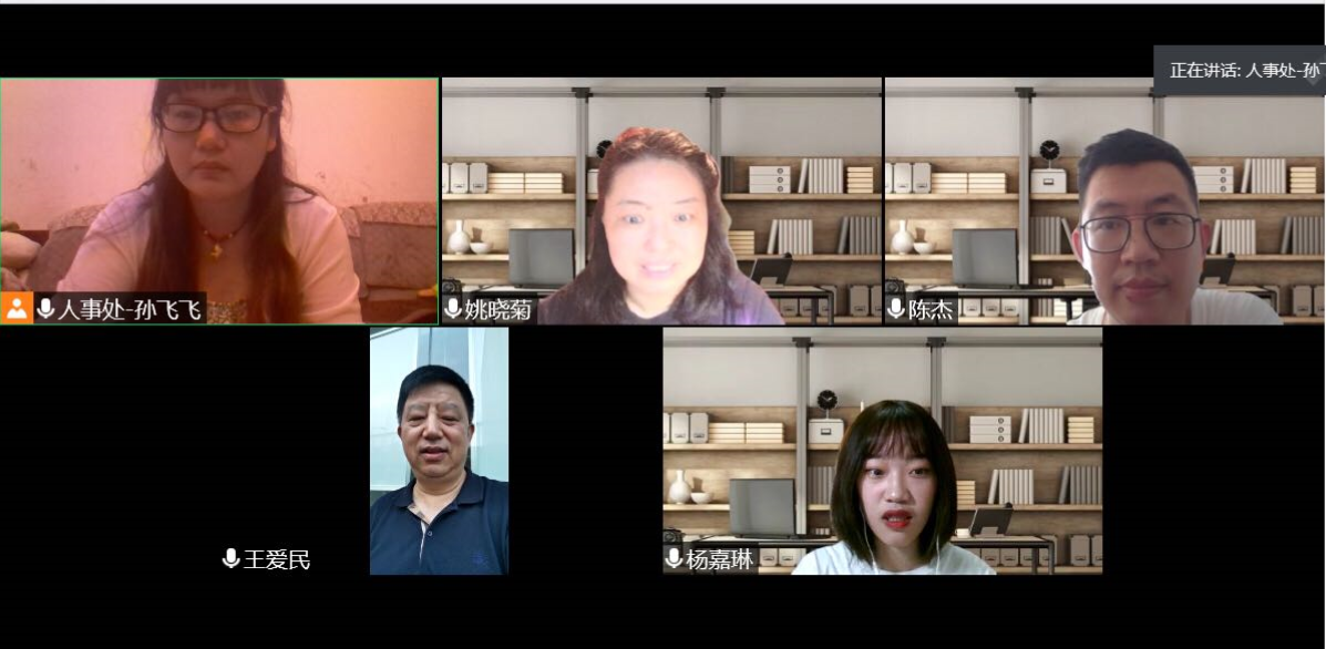 6月18日下午人事处牵头组织成立了学生工作助理、实验室管理员和国际交流学院专员岗位三个网络面试小组,由就业指导中心、教学督导与评估中心、人事处和各用人单位负责人担任评委,对入选人员进行了网络面试。校纪委派蒋萦同志对整个过程进行了监督指导。
