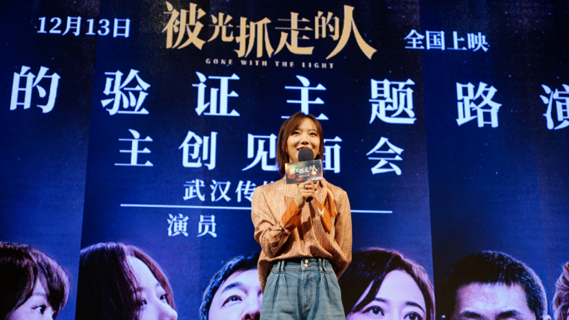 随后,主演王珞丹来到台前,与现场观众交流互动。谈到电影里的这束“光”,王珞丹分析道:“电影里的这道光就像一面镜子,照见的是自己。电影无关是非对错,就是去经历爱情最美好的样子。”