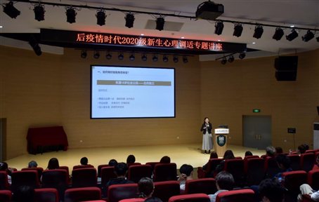 为帮助2020级新生尽快熟悉并适应大学生活,引导新生主动做好心理调适,完成由中学生到大学生的角色转变,帮助新生正确对待环境、学习、生活、人际等变化带来的各种不适,用积极的心态迎接新的人生挑战,2020年10月29日下午,我校学工处大学生心理健康教育中心在圆形报告厅开展“后疫情时代2020级新生心理调适”专题讲座。本次讲座由心理健康教育中心专职教师刘丽主讲,2020级全体心理委员在圆形报告厅听取了此次讲座,其他学生在哔哩哔哩平台在线观看直播。
