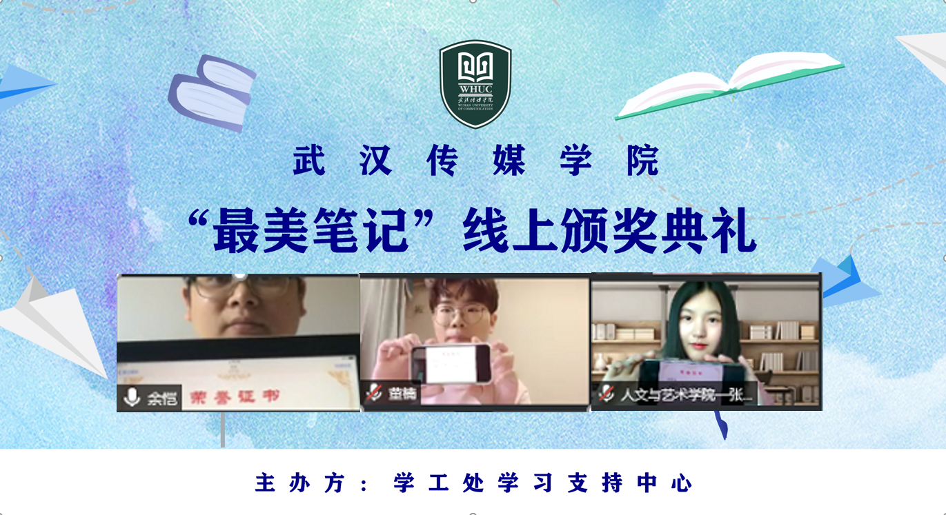 本网讯(通讯员 邵国超)“满满的仪式感,让我觉得疫情期间网课上所有认真写下的笔记都是值得的”,5月11日,一场特殊的“云颁奖”典礼在线上举行,以表彰武汉传媒学院在疫情期间举办 “最美笔记”征集活动中的获奖同学。