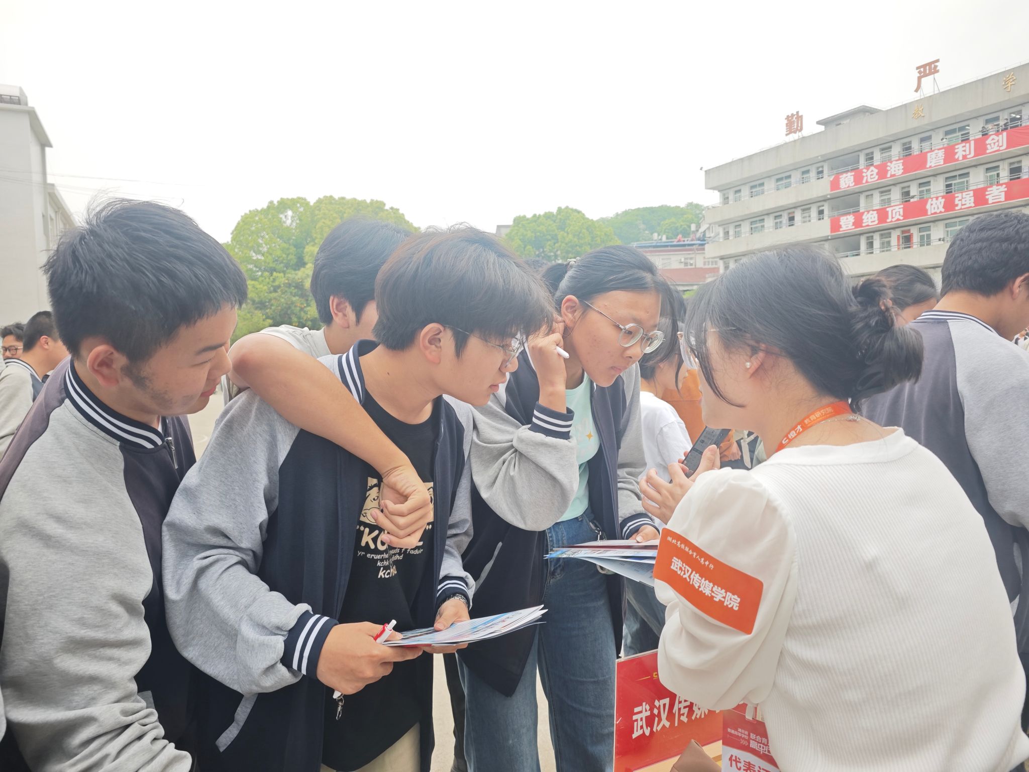 (通讯员 李虹慧)为加强高中与高校的交流互动,精准传递我校高考招生政策,积极探索联合育人新路径,4 月 23 日至 25 日,我校传媒技术学院精心组织了一支专业素养高、沟通能力强的教师团队,奔赴黄冈部分地区,开展了主题为“湖北高校联合育人高中行”的系列宣传活动。