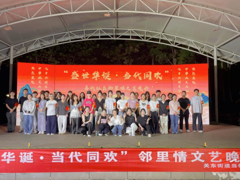 (通讯员 武思雨)9月27日,由东湖新技术开发区关东街道办事处主办、当代社区居民委员会承办、我校文化管理学院 “常青树”毕设团队全程协办的“盛世华诞・当代同欢”邻里情文艺晚会暨便民公益集市活动,在当代社区运动公园圆满落幕。本次活动是我校文化管理学院推动产教融合、强化实践教学的重要成果,充分展现了文化产业管理专业(演艺策划方向)学生在大型社区文化项目中的策划执行与综合协调能力。