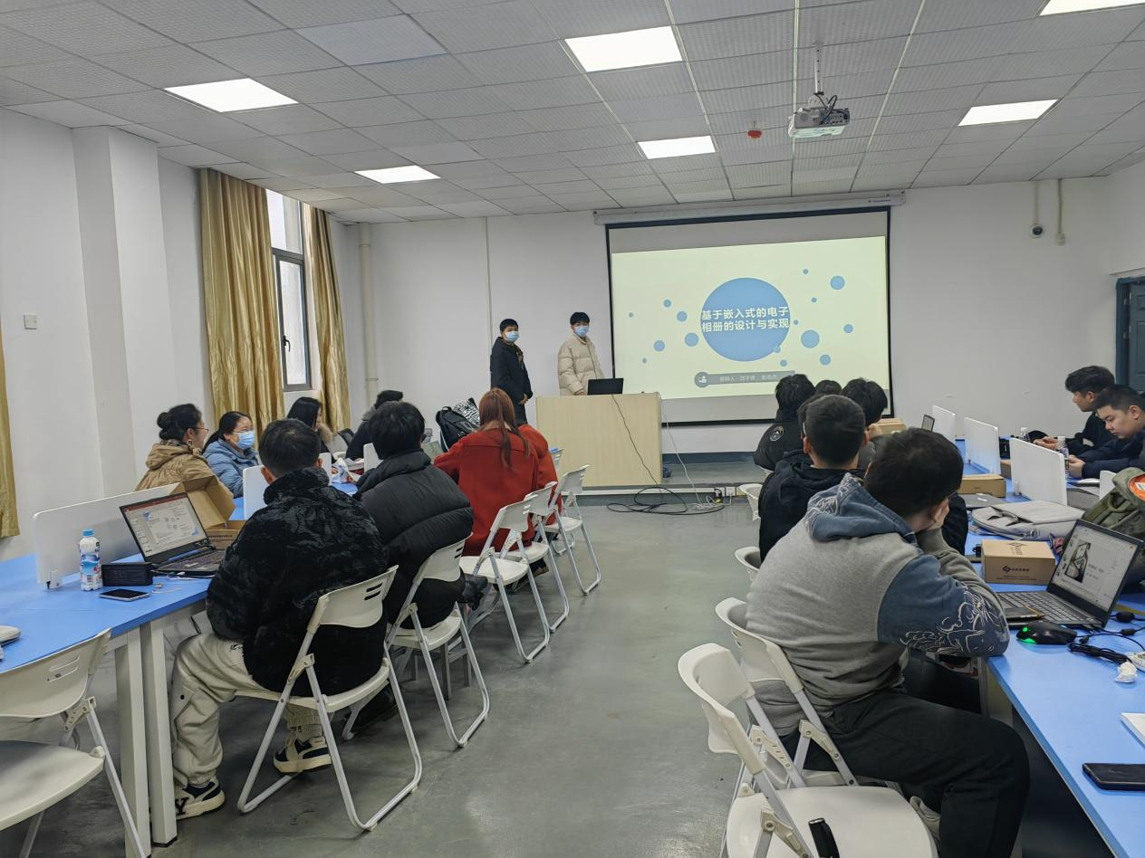 本学期开学伊始,电信B2001班在实验楼8401完成了《嵌入式系统课程设计》的调试和验收工作。本次课程设计采用的是校企合作方式,由学院指导教师陶慧芳和广州粤嵌通信科技股份有限公司的工程师周政通联合指导完成。课堂现场气氛十分活跃,学生自主分析讨论。