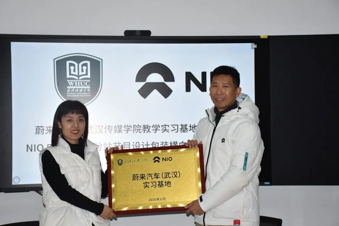 2020年11月24日,武汉传媒学院播音主持艺术学院教学实习基地揭牌仪式在国际学院智慧教室成功举行。揭牌仪式由武汉传媒学院教务处处长姜虹、播音主持艺术学院院长助理陈黎黎、播音主持艺术学院教师刘胤良、蔚来武汉区域公司总经理耿彦珩、用户发展部负责人李俊、人力资源部负责人向惺、网络发展负责人李江南、楚蔚堂车友会会长华建峰以及各位车友代表共同参与。