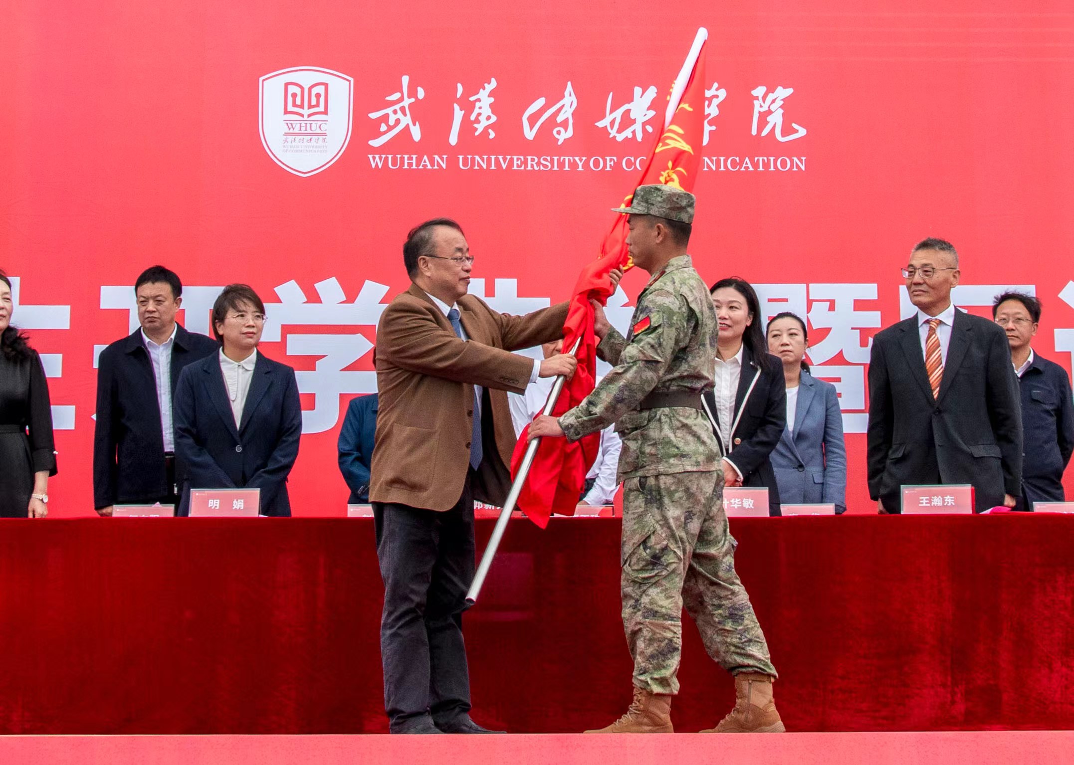 (武传新闻网讯 摄影记者 孟浩宇 徐仲博)微雨送寒,洗练出青春底色。9月21日上午8时,武汉传媒学院2023级新生开学典礼暨军训动员大会在大悟校区田径场隆重举行。